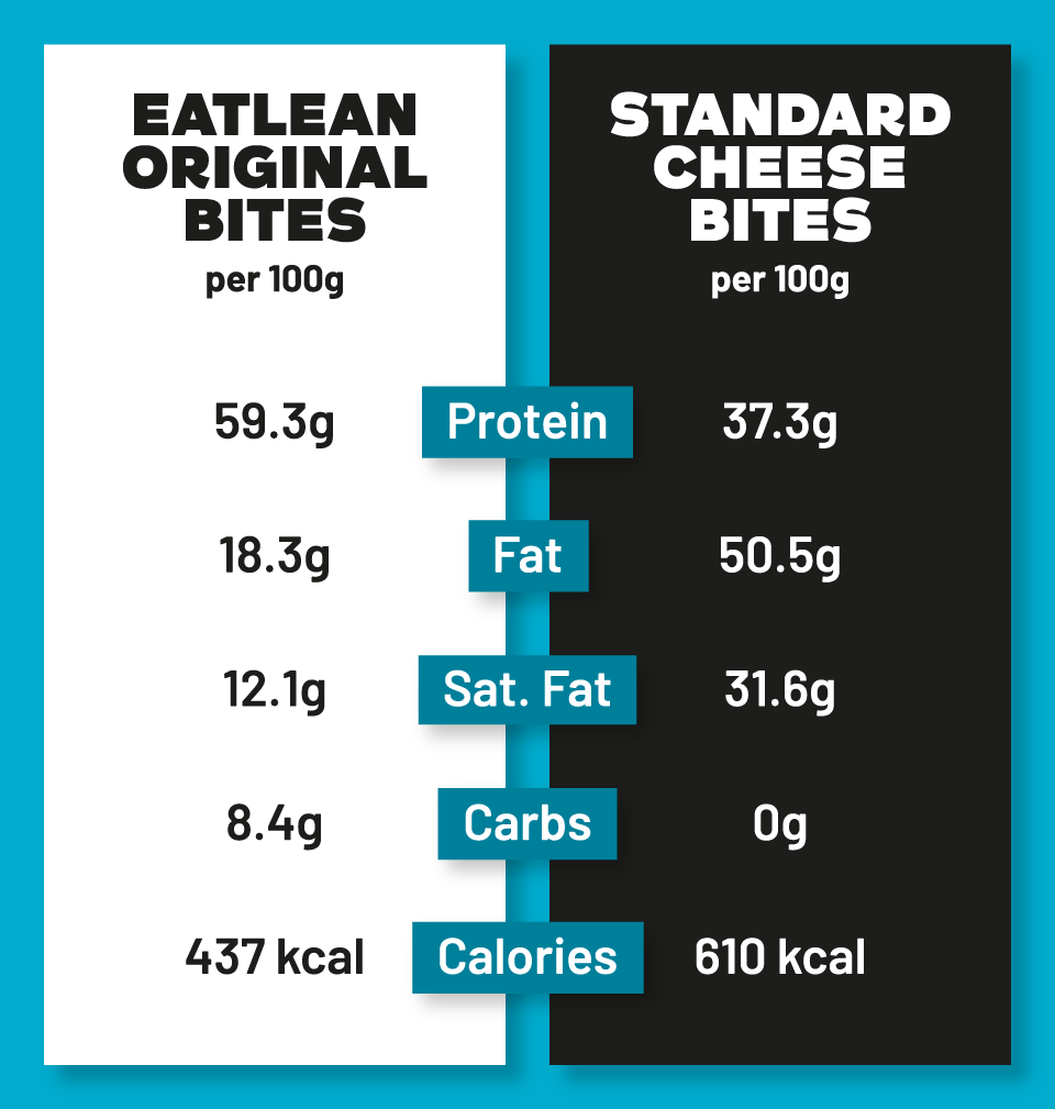 Compared to a full fat cheese, our cheese is quite simply, game-changing!