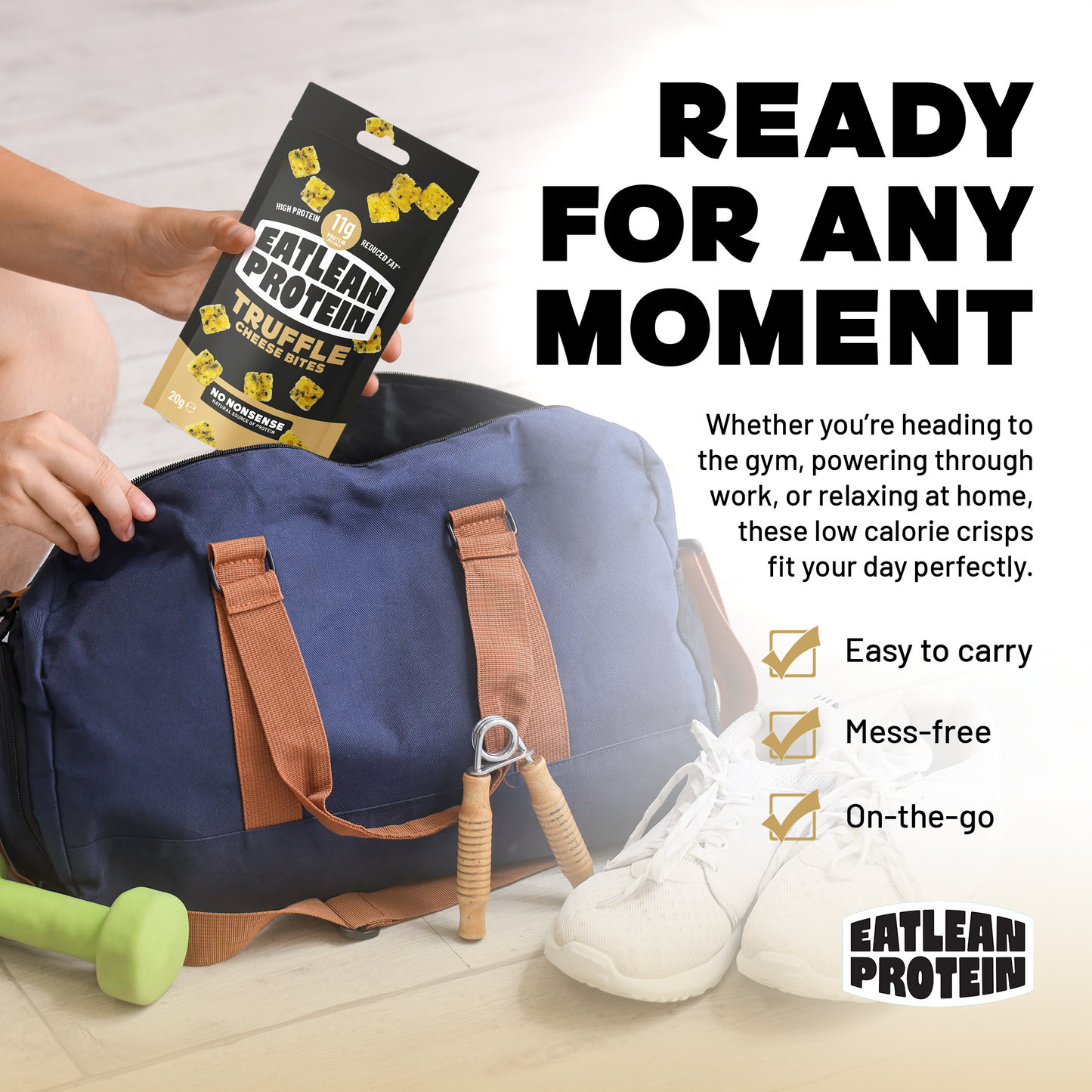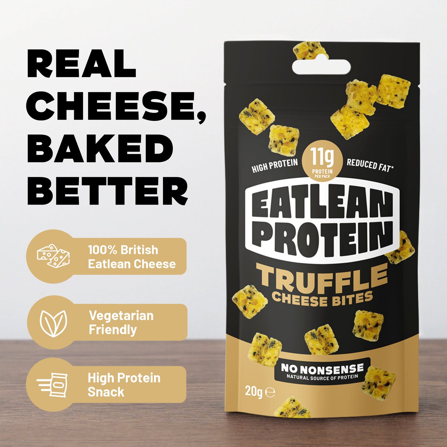 Baked to the perfect crunch using 100% British cheese, these high protein bites contain less than 4g fat and 83 kcal! Absolutely no nonsense…absolutely game-changing cheese.
