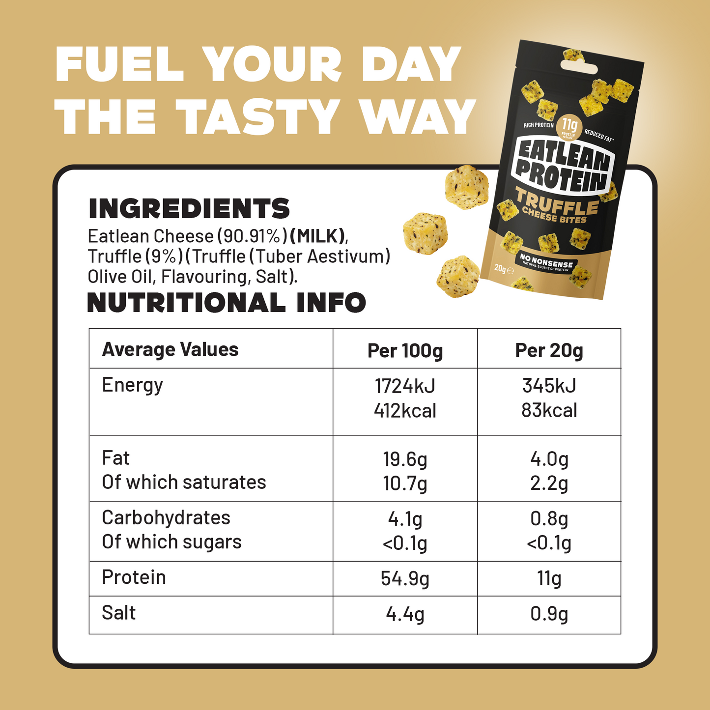 Deliciously truffled, cheese bites of high protein, supercharged-snacking greatness!